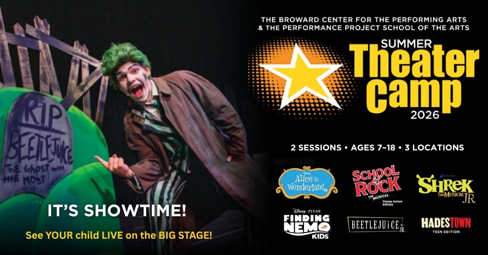 The Broward Center for the Performing Arts and The Performance Project School of the Arts, welcome you to Summer Theater Camp 2026! Two sessions of camp are available at Broward Center in Fort Lauderdale, Aventura Arts & Cultural Center in Aventura and the Rose & Alfred Miniaci Performing Arts Center at Nova Southeastern University in Davie.